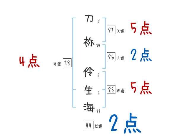 刀祢伶生海さんの画数の鑑定結果