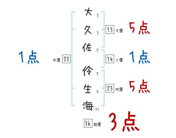 大久佐伶生海さんの画数の鑑定結果