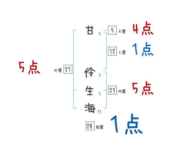 甘伶生海さんの画数の鑑定結果