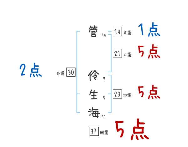 外運![]() | 管伶生海さんの外運は30画の2つ星!浮き沈みの激しさに注意しましょう。 生活面を象徴する運勢です。外部から受ける影響力を表し、結婚運、家庭運や職場、環境への順応性を表します。 |