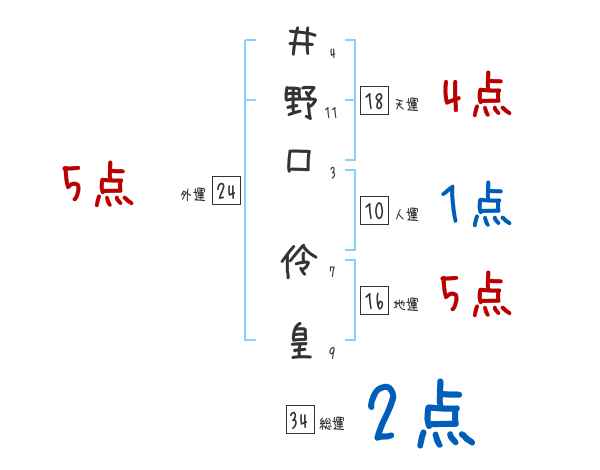 総運![]() | 井野口伶皇さんの総運は34画の2つ星!独創性に優れるが、自尊心が強く災難に注意しましょう。 あなたの人生を表す1番重要な運勢です。生涯を通じて影響する総合運となり、主に50歳以降の晩年期に影響を及ぼします。 |
