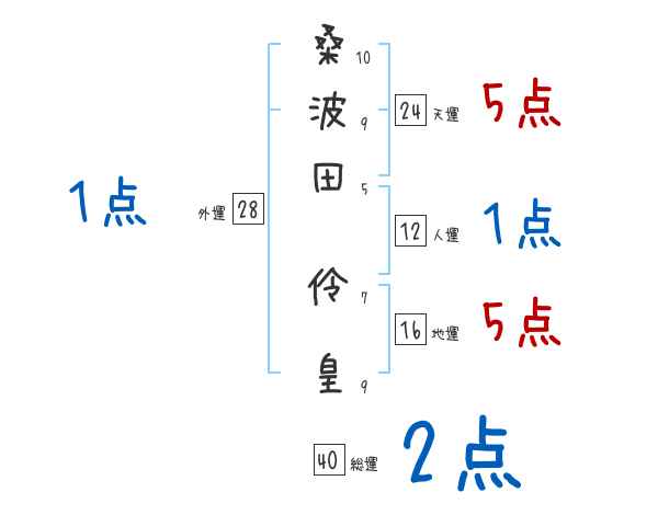 天運![]() | 桑波田伶皇さんの天運は24画の5つ星!家庭運が良く順調な人生。金運にも恵まれる。 家系が持つ宿命的な運勢を表します。祖先から受け継いだ苗字ですので自分の力が及びません。家柄を象徴します。 |