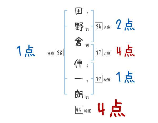 田野倉伸一朗さんの画数の鑑定結果