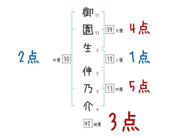 天運![]() | 御園生伸乃介さんの天運は29画の4つ星!完全主義で才能がある。厳格な心の持ち主。 家系が持つ宿命的な運勢を表します。祖先から受け継いだ苗字ですので自分の力が及びません。家柄を象徴します。 |