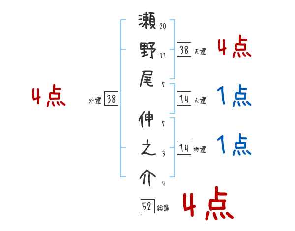 瀬野尾伸之介さんの画数の鑑定結果