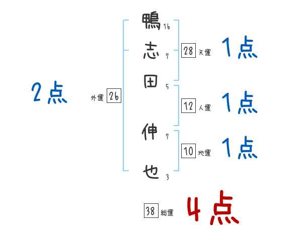 鴨志田伸也さんの画数の鑑定結果