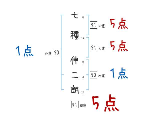 七種伸二朗さんの画数の鑑定結果