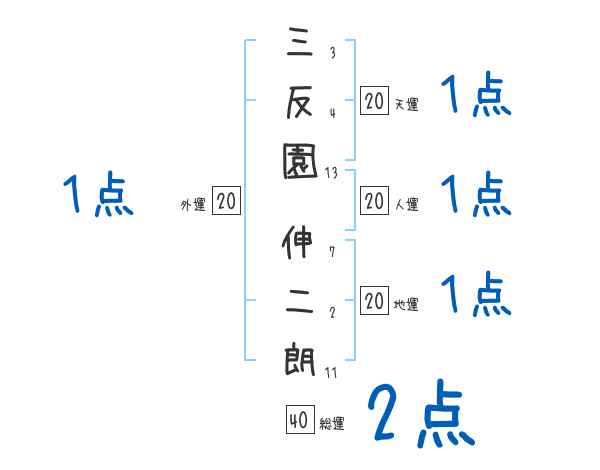 総運![]() | 三反園伸二朗さんの総運は40画の2つ星!自信過剰で物事に固執するためトラブルに注意。 あなたの人生を表す1番重要な運勢です。生涯を通じて影響する総合運となり、主に50歳以降の晩年期に影響を及ぼします。 |
