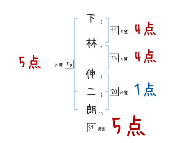 下林伸二朗さんの画数の鑑定結果
