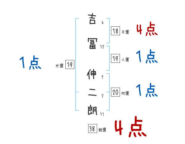 吉冨伸二朗さんの画数の鑑定結果