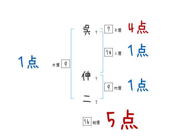 呉伸二さんの画数の鑑定結果