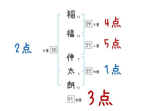 総運![]() | 稲福伸太朗さんの総運は51画の3つ星!変化が激しく、危険に注意。堅実な性格。 あなたの人生を表す1番重要な運勢です。生涯を通じて影響する総合運となり、主に50歳以降の晩年期に影響を及ぼします。 |