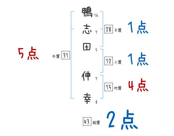 天運![]() | 鴨志田伸幸さんの天運は28画の1つ星!家庭環境に注意。スポーツで活躍できる能力があるかも。 家系が持つ宿命的な運勢を表します。祖先から受け継いだ苗字ですので自分の力が及びません。家柄を象徴します。 |