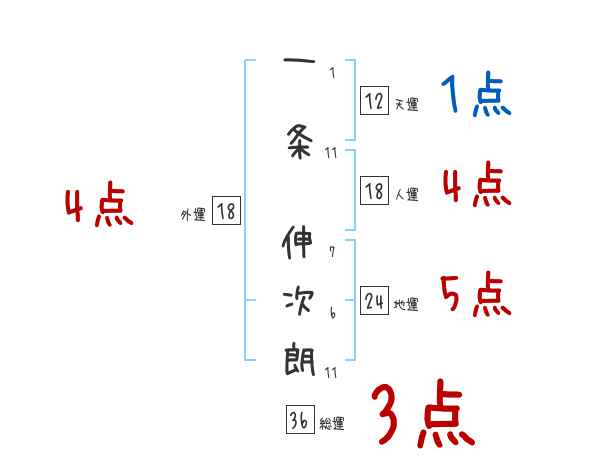 総運![]() | 一条伸次朗さんの総運は36画の3つ星!先見性が豊かです。多少神経質で苦労することも。 あなたの人生を表す1番重要な運勢です。生涯を通じて影響する総合運となり、主に50歳以降の晩年期に影響を及ぼします。 |