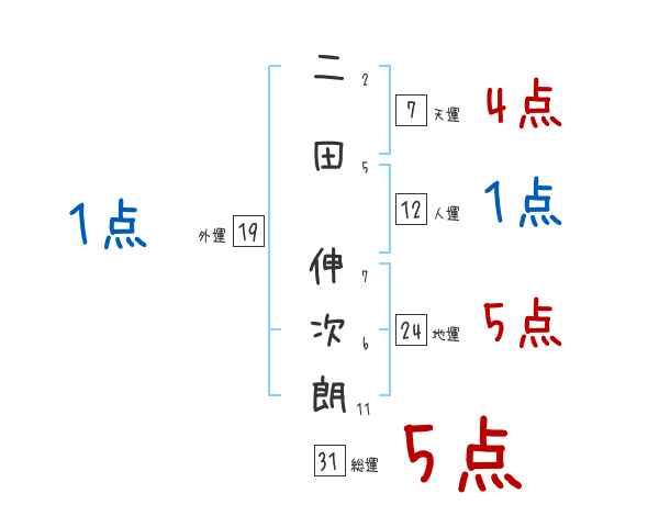 二田伸次朗さんの画数の鑑定結果