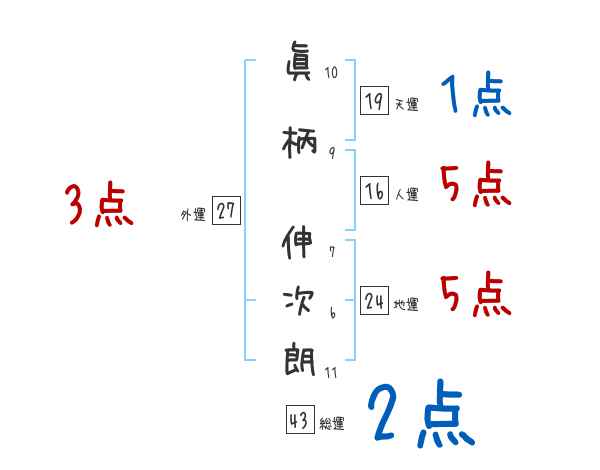 天運![]() | 眞柄伸次朗さんの天運は19画の1つ星!優れた才能を持ちますが、協調性が足りないことも。周りの人と協力する事を意識しましょう。 家系が持つ宿命的な運勢を表します。祖先から受け継いだ苗字ですので自分の力が及びません。家柄を象徴します。 |