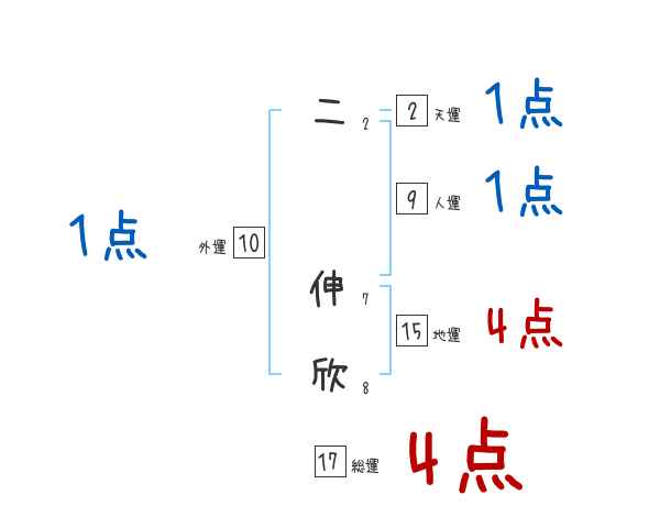総運![]() | 二伸欣さんの総運は17画の4つ星!積極的な行動力。地位を気づき財産を手に入れる。純粋な心と直感力。 あなたの人生を表す1番重要な運勢です。生涯を通じて影響する総合運となり、主に50歳以降の晩年期に影響を及ぼします。 |