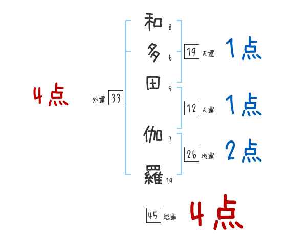 和多田伽羅さんの画数の鑑定結果