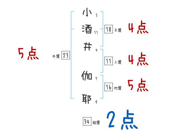 外運![]() | 小酒井伽耶さんの外運は23画の5つ星!想像力に優れ活力がある。一代で成功し名誉を手に入れる。 生活面を象徴する運勢です。外部から受ける影響力を表し、結婚運、家庭運や職場、環境への順応性を表します。 |