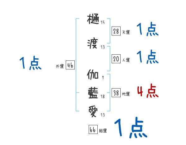 樋渡伽藍愛さんの画数の鑑定結果