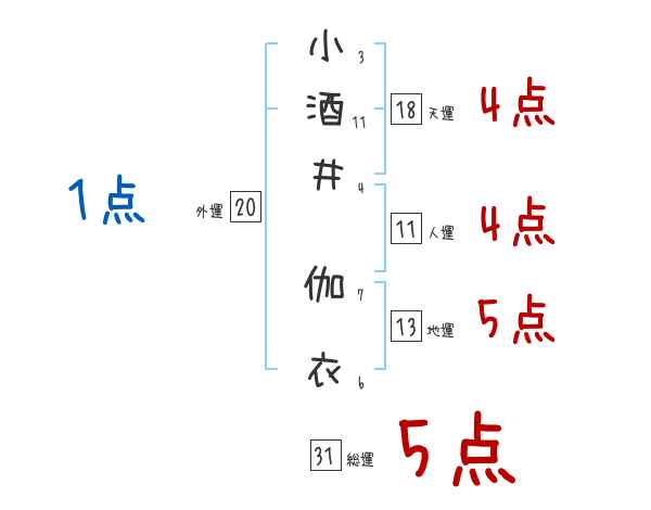 小酒井伽衣さんの画数の鑑定結果
