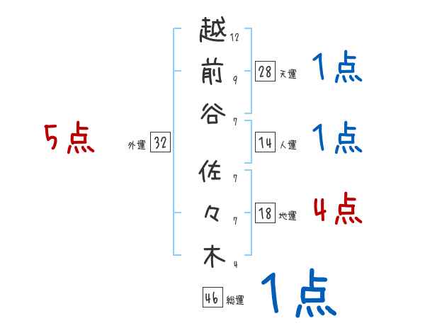 越前谷佐々木さんの画数の鑑定結果