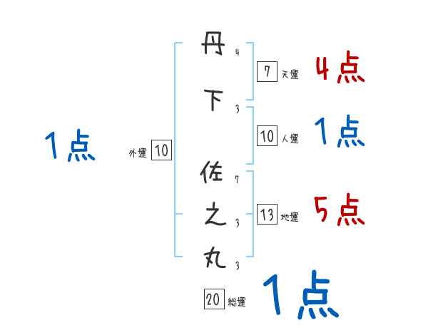 天運![]() | 丹下佐之丸さんの天運は7画の4つ星!強い意志や信念を持ち独立心が強い。自立する。 家系が持つ宿命的な運勢を表します。祖先から受け継いだ苗字ですので自分の力が及びません。家柄を象徴します。 |