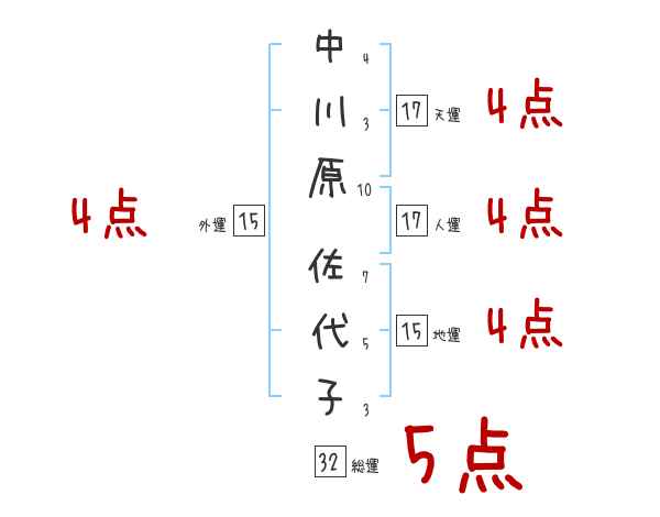 総運![]() | 中川原佐代子さんの総運は32画の5つ星!柔軟性があり成功する。チャンスが多く金運が良い。 あなたの人生を表す1番重要な運勢です。生涯を通じて影響する総合運となり、主に50歳以降の晩年期に影響を及ぼします。 |