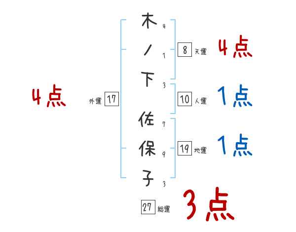 木ノ下佐保子さんの画数の鑑定結果