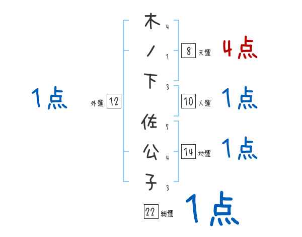木ノ下佐公子さんの画数の鑑定結果