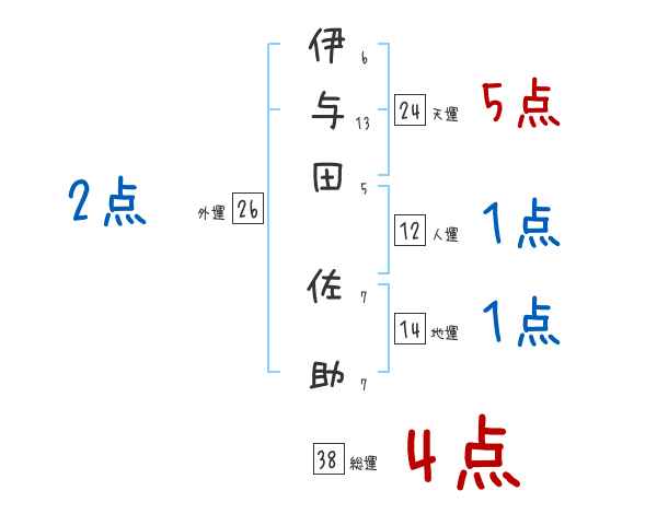 総運![]() | 伊与田佐助さんの総運は38画の4つ星!温厚な性格で技術的な才能を発揮する。職人的な仕事に向いている。 あなたの人生を表す1番重要な運勢です。生涯を通じて影響する総合運となり、主に50歳以降の晩年期に影響を及ぼします。 |