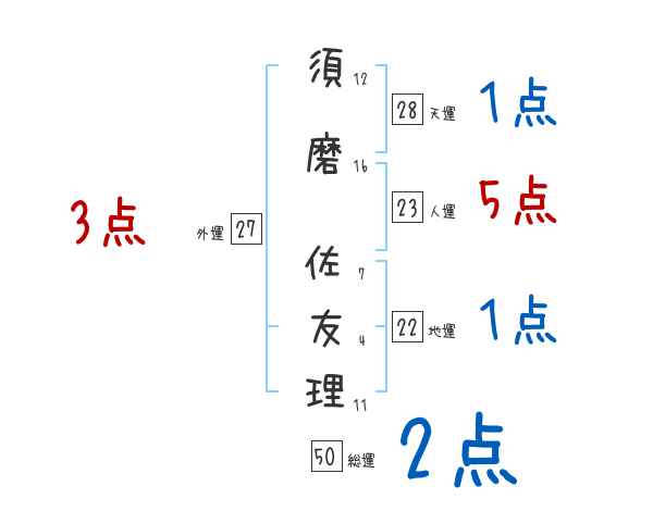 須磨佐友理さんの画数の鑑定結果