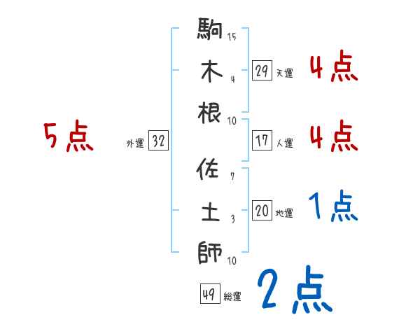 駒木根佐土師さんの画数の鑑定結果