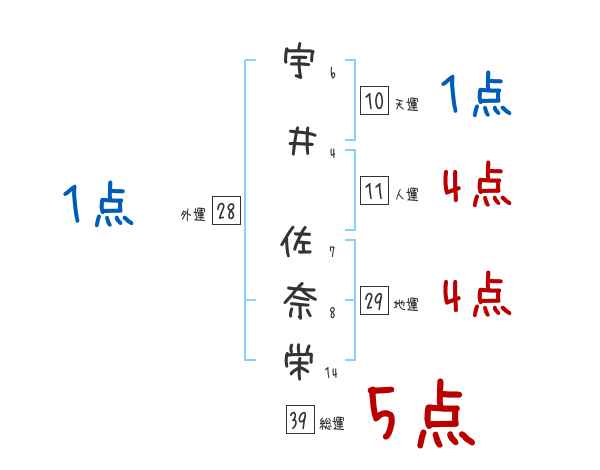 宇井佐奈栄さんの画数の鑑定結果