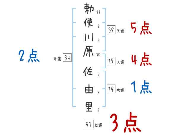 天運![]() | 勅使川原佐由里さんの天運は32画の5つ星!柔軟性があり成功する。チャンスが多く金運が良い。 家系が持つ宿命的な運勢を表します。祖先から受け継いだ苗字ですので自分の力が及びません。家柄を象徴します。 |