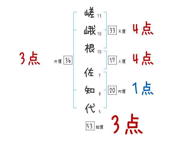 嵯峨根佐知代さんの画数の鑑定結果