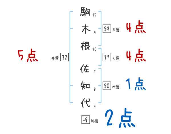 駒木根佐知代さんの画数の鑑定結果