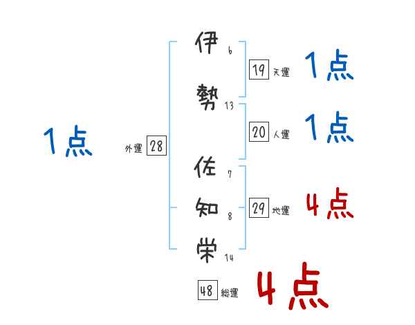 天運![]() | 伊勢佐知栄さんの天運は19画の1つ星!優れた才能を持ちますが、協調性が足りないことも。周りの人と協力する事を意識しましょう。 家系が持つ宿命的な運勢を表します。祖先から受け継いだ苗字ですので自分の力が及びません。家柄を象徴します。 |