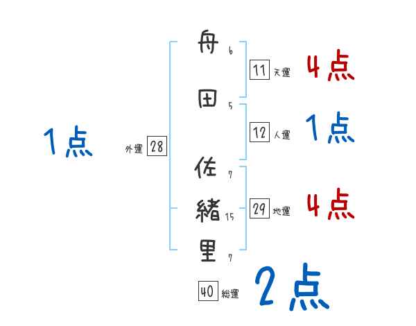 舟田佐緒里さんの画数の鑑定結果