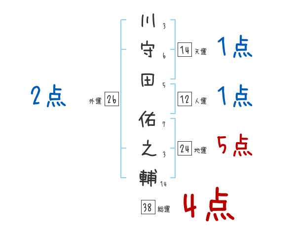 外運![]() | 川守田佑之輔さんの外運は26画の2つ星!波瀾万丈かも。信頼できる人を大事にしましょう。 生活面を象徴する運勢です。外部から受ける影響力を表し、結婚運、家庭運や職場、環境への順応性を表します。 |