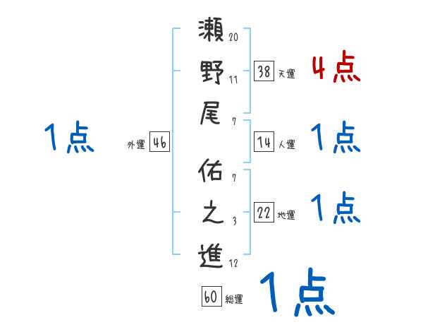 瀬野尾佑之進さんの画数の鑑定結果