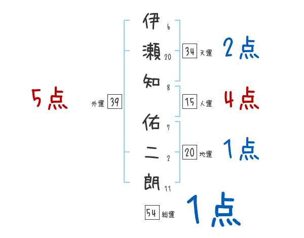 伊瀬知佑二朗さんの外運は39画の5つ星
