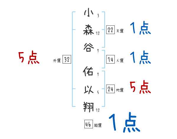 小森谷佑以翔さんの画数の鑑定結果