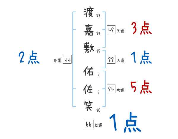 渡嘉敷佑佐笑さんの画数の鑑定結果