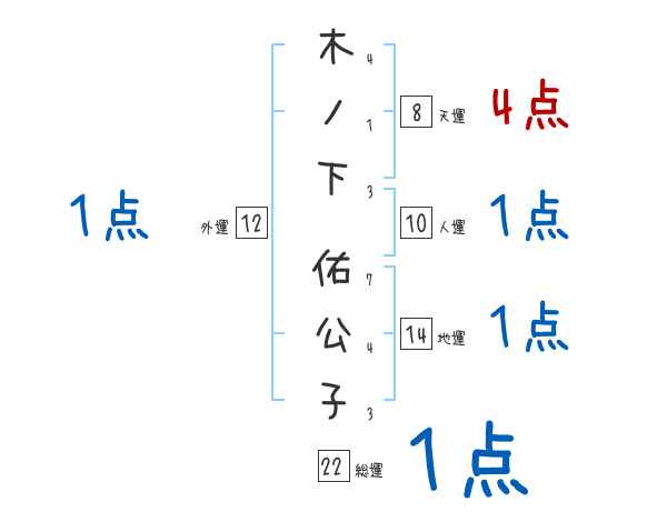 木ノ下佑公子さんの画数の鑑定結果