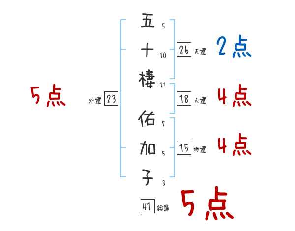 五十棲佑加子さんの画数の鑑定結果