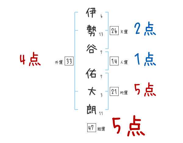 外運![]() | 伊勢谷佑大朗さんの外運は33画の4つ星!権力志向でプライドが高い。勇気があり運を切り開き成功する。 生活面を象徴する運勢です。外部から受ける影響力を表し、結婚運、家庭運や職場、環境への順応性を表します。 |
