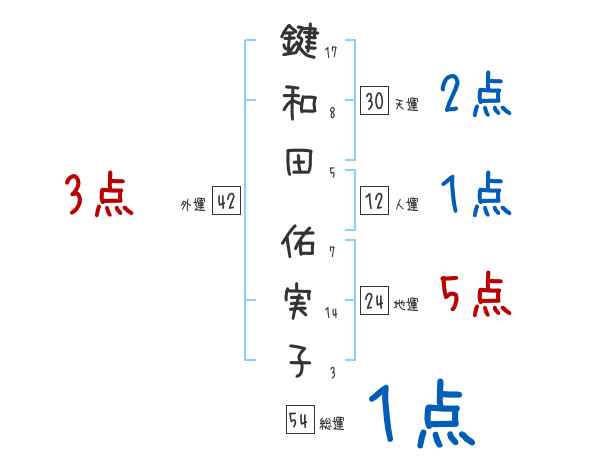 鍵和田佑実子さんの画数の鑑定結果