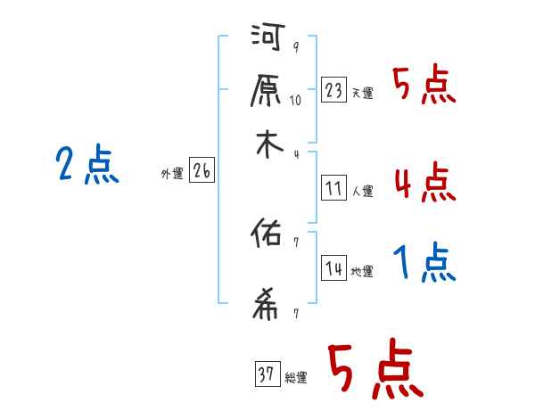 河原木佑希さんの画数の鑑定結果