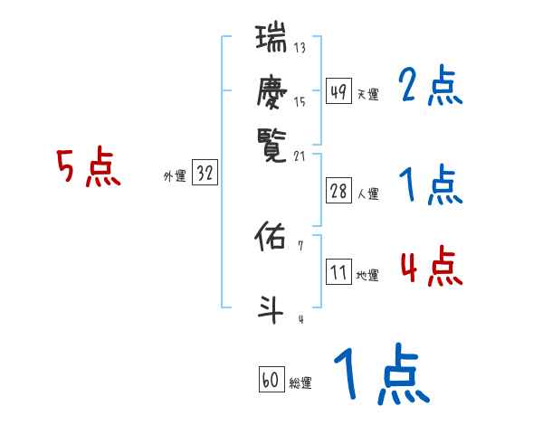瑞慶覧佑斗さんの画数の鑑定結果